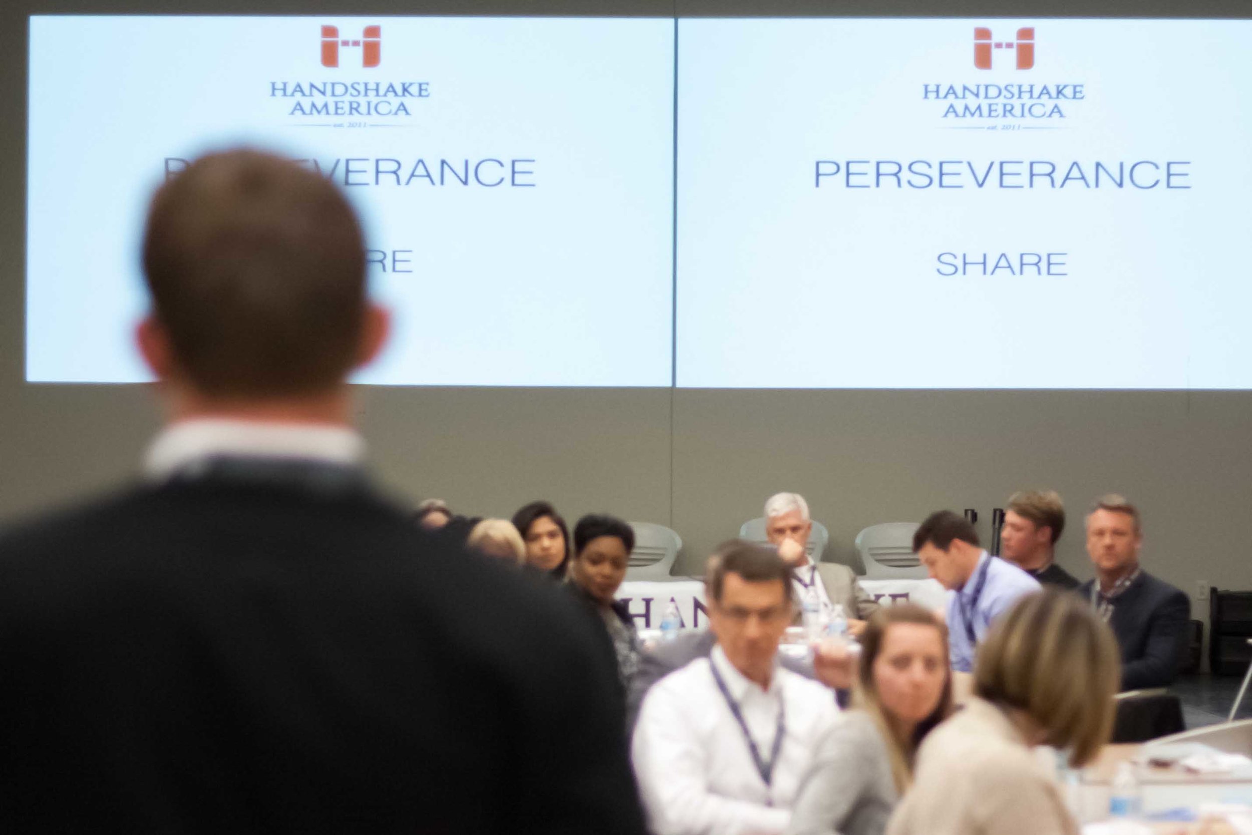 "Perseverance is the ability to resist temptation and stay the course; you do not give up!" Those are the timeless words of John Wooden. The word "perseverance" comes from a Latin root that means "abiding by strictly." Its synonyms are: persistence, tenacity, determination, staying power, steadfastness, purposefulness, and here at Handshake, I think we can safely add the word "grit" to that list.
